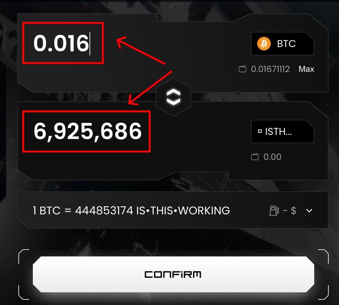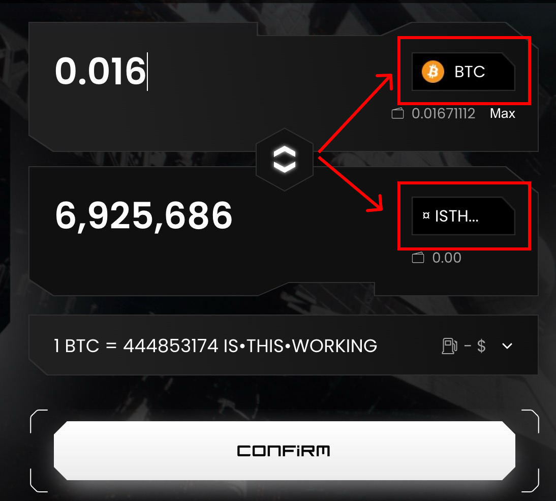 Next, either type an amount in the upper section to input the number of tokens you want to swap (spending amount). Or, type an amount in the lower section to input the number of tokens you want to swap to (receiving amount).