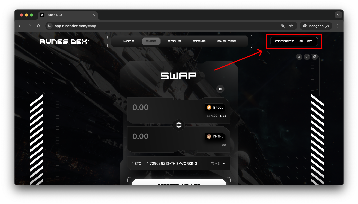 Go to the Runes Dex Website.